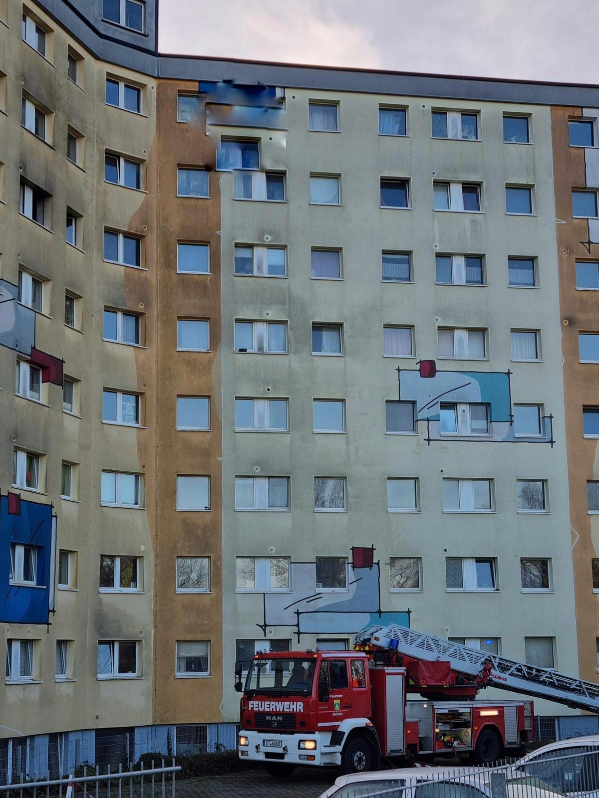 Anschließend wurde mit der Brandbekämpfung begonnen. Weitere Atemschutztrupps kontrollierten mehrere anliegende Wohnungen konnten aber kein weiteres Schadensereignis feststellen.