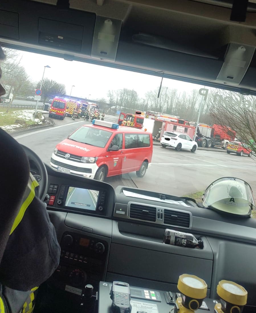 Gegen 10:37 wurden die Feuerwehr Ibbenbüren sowie Spezialkräfte aus dem Kreis Steinfurt zum Rastplatz Brockbachtal-Süd auf der A30 alarmiert. Bei der Kontrolle eines LKWs stellte die Autobahnpolizei fest, dass der verladene Gefahrstoff Ammoniumbifluorid ausgetreten war, und alarmierte daraufhin die Feuerwehr.