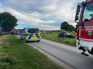 Am Donnerstagmorgen rückte die Feuerwehr Steinfurt zu einem Verkehrsunfall mit zwei verletzten Personen nach Hollich aus. Vorort angekommen begann man mit Sicherung der Einsatzstelle und der Versorgung der beiden Verletzten. Diese wurden mittels Rettungswagen und Hubschrauber in umliegende Krankenhäuser verbracht.