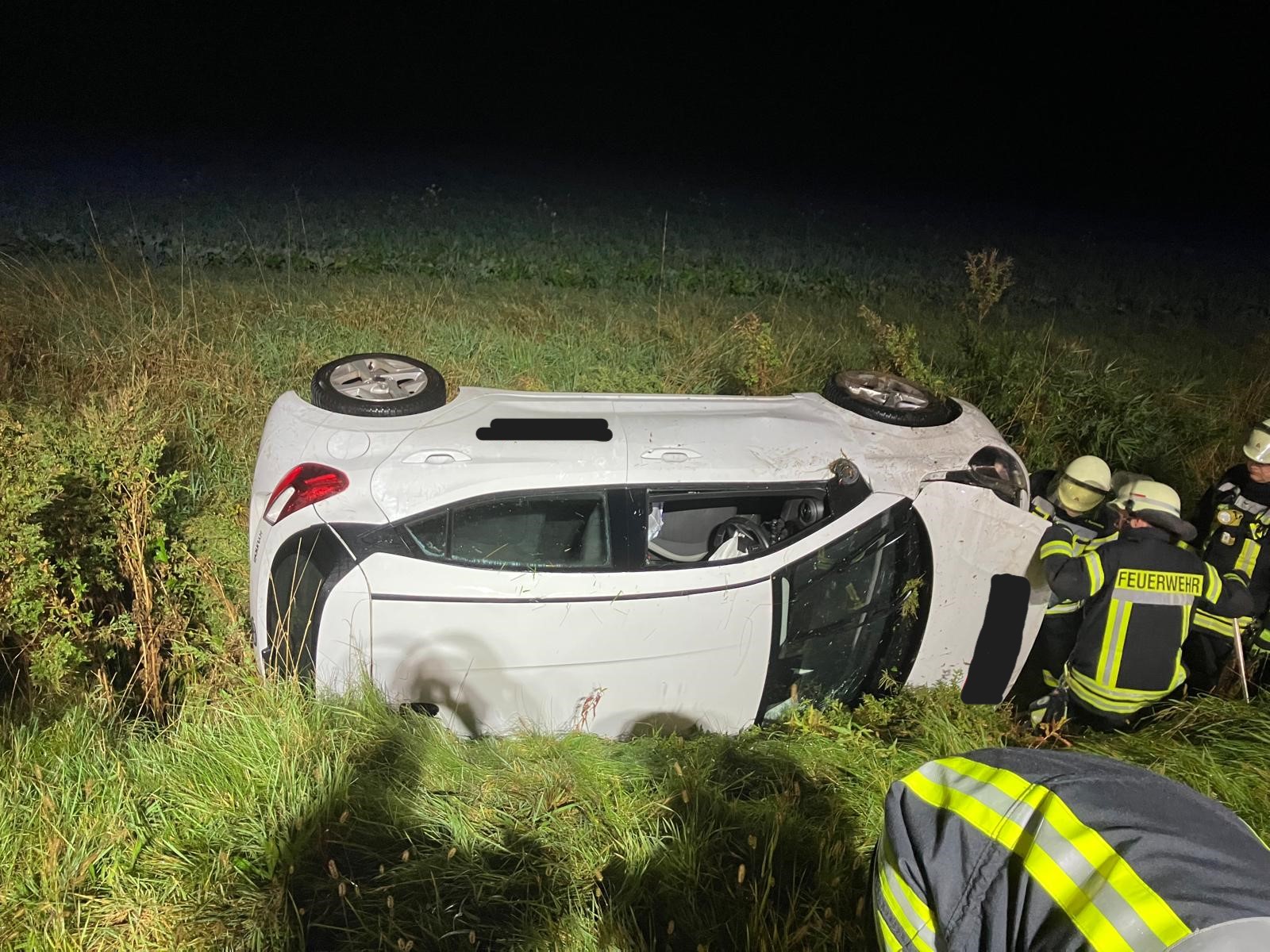 Im Bereich Hollich hatte sich ein PKW überschlagen.